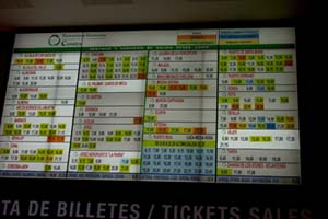 バスターミナルの上に大きく掲げられていた物でVerano,inviernoといった表記は下の窓口に貼り出されていることもあるのですが