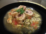 第100回 Rollito de pollo con la salsa de champiñón ベーコンとデーツの鶏肉巻き、マッシュルームソース添え