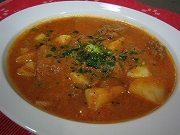 今月はバスク地方の郷土料理、スカルキという面白い名前の料理をご紹介します。スカルキというのは、バスク語で台所やガス台などいろんな意味を持つらしいですが、この場合は「煮込み」という訳が一番正しいと思います。ひと晩置いたほうが味の深みが増しますから、前日に作って食べてくださいね。